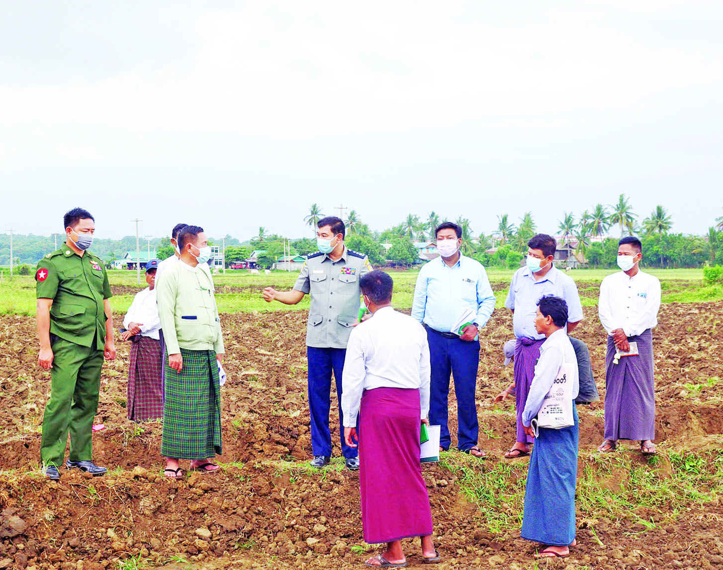 ထို့နောက် မြို့နယ်စီမံအုပ်ချုပ်ရေးအဖွဲ့ ဥက္ကဋ္ဌ ဦးစိန်ကြည်နှင့် တာဝန်ရှိသူများက ရာသီဥတုပြောင်းလဲမှုနှင့် မိုးရေချိန်ရရှိမှု အခြေအနေများ၊ ပိုးမွှားရောဂါကျရောက်မှု လျော့နည်းစေရန် ဆောင်ရွက်ရမည့် နည်းလမ်း များ၊ ဒေသနှင့် ကိုက်ညီမည့် သီးနှံများ အကြောင်းများကို ရှင်းလင်းဆွေးနွေးပြီး နေပြည်တော်ကောင်စီအဖွဲ့ဝင် ရဲမှူးကြီး ကိုကိုလွင်က လိုအပ်သည်များနှင့် ဆက်လက် ဆောင်ရွက်ရမည့် အစီအစဉ်များအား မှာကြားခဲ့ကြောင်း သိရသည်။