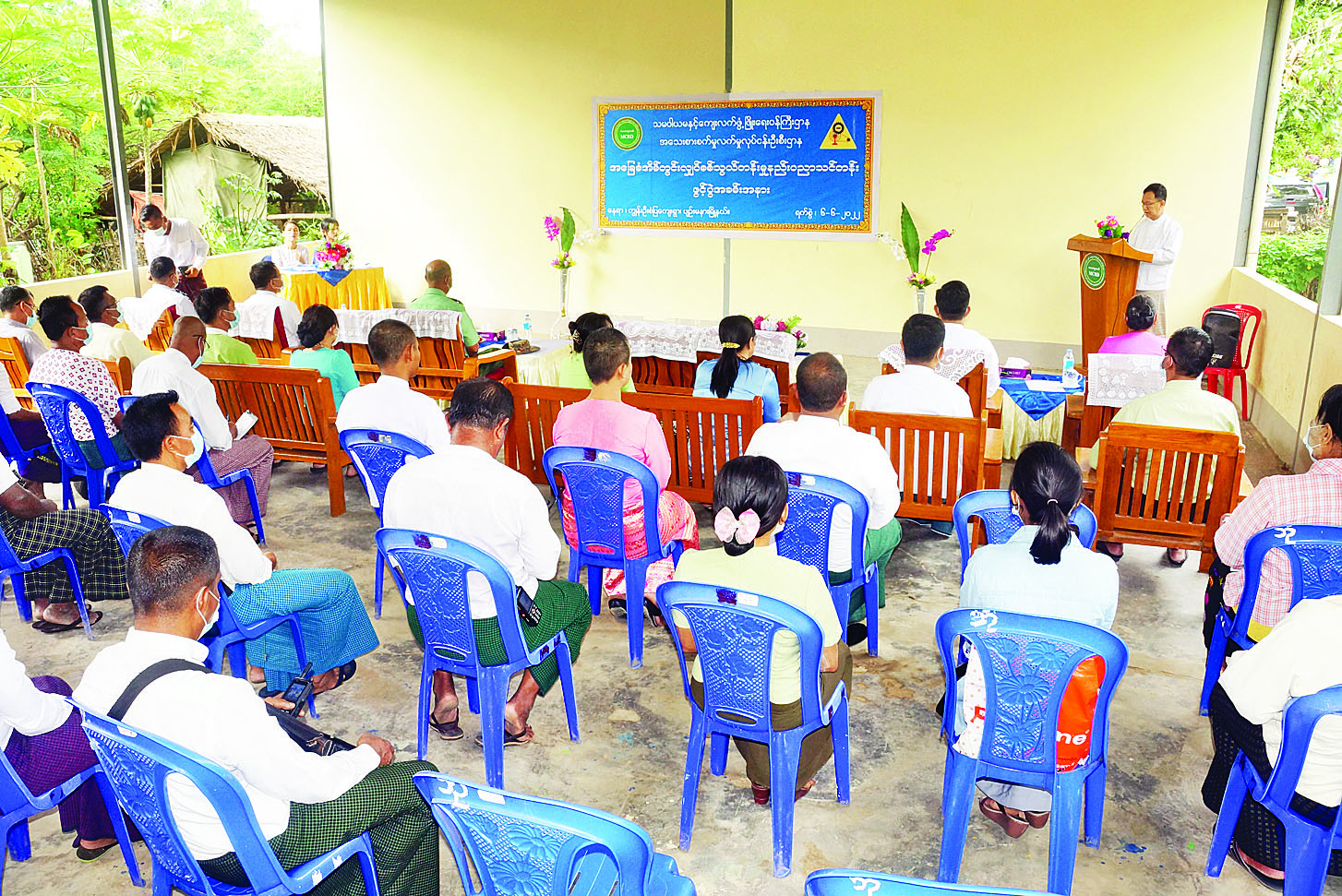 ရှေးဦးစွာ နေပြည်တော် ကောင်စီဥက္ကဋ္ဌ ဒေါက်တာ မောင်မောင်နိုင်က ကျေးလက်နေ ပြည်သူများ၏ လူမှုစီးပွားဘဝ ဖွံ့ဖြိုးရေးကို ဦးတည်ကြိုးပမ်း ဆောင်ရွက်နေသည်နှင့် အညီ နေပြည်တော်အတွင်း ခေတ်မီစံပြ ကျေးရွာများအဖြစ် ပျဉ်းမနား မြို့နယ် ကျွန်းဦးကျေးရွာ အပါအဝင် လယ်ဝေးမြို့နယ် သော်မှော်ကုန်း ကျေးရွာနှင့် တပ်ကုန်းမြို့နယ် ဂွေးပင်ကျေးရွာ တို့ကို အကောင်အထည်ဖော် ဆောင်ရွက်နေပါကြောင်း၊ ယခု ကဲ့သို့ နည်းပညာပေးသင်တန်း များ ဖွင့်လှစ်ပေးခြင်းဖြင့် ကျေးရွာနေပြည်သူများအနေဖြင့် ကိုယ်ပိုင် လုပ်ငန်းငယ်များ ထူထောင်လာနိုင်ခြင်း၊ အလုပ် အကိုင်အခွင့်အလမ်းများ ရရှိလာ ခြင်းစသည့် အကျိုးကျေးဇူးများ ရရှိလာမည် ဖြစ်သည့်အပြင် လူမှုစီးပွားဘဝ မြင့်တက်လာပြီး ခေတ်မီစံပြကျေးရွာကြီး ဖြစ်လာ မည်ဟု မျှော်မှန်းပါကြောင်း၊ သင်တန်း တက်ရောက်လာကြ သည့် ကျေးရွာသားများအနေဖြင့် ယခုသင်တန်းက ပို့ချပေးသည့် နည်းပညာများကို အလေးထား သင်ယူကြရန် အလေးအနက်ထား တိုက်တွန်း ပြောကြားလိုပါကြောင်း၊ ကျေးရွာလိုအပ်ချက်များကို ဌာန များမှ ပူးပေါင်းကူညီဆောင်ရွက် ပေးမည်ဖြစ်သည့်အတွက် ကျေးရွာ သူ ကျေးရွာသားများ၊ ရပ်မိ ရပ်ဖများ အနေဖြင့်လည်း ကျေးရွာဖွံ့ဖြိုးတိုးတက်ရေးအတွက် ဝိုင်းဝန်းကူညီ ဆောင်ရွက်ပေး စေလိုပါကြောင်း ပြောကြား သည်။