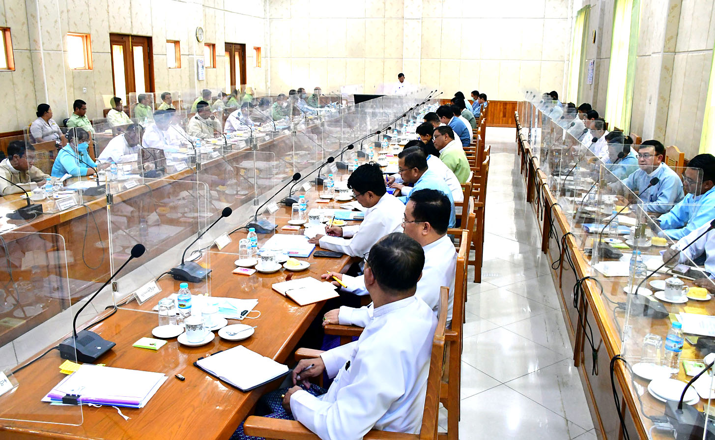ယင်းနောက် နေပြည်တော်ကောင်စီဥက္ကဋ္ဌက တင်ပြဆွေးနွေးချက်များနှင့် စပ်လျဉ်း၍ လိုအပ်သည် များကို ဖြည့်စွက်ဆွေးနွေးခဲ့ကြောင်း သတင်းရရှိ သည်။