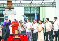 ဖာဒီနန် ရာမူဒက်ဇ် မားကို့စ်သည် မနီလာမြို့ရှိ အမျိုးသားပြတိုက်တွင် ဇွန် ၃၀ ရက်ကကျင်းပသည့် ကျမ်းသစ္စာကျိန်ဆိုပွဲသို့ လာရောက်ကြည့်ရှုသူ…