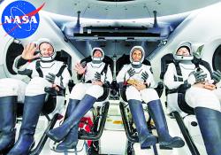နာဆာအာကာသယာဉ်မှူးသုံးဦးပါသည့် SpaceX အာကာသယာဉ်သည် အမေရိကန်နိုင်ငံ အရှေ့တောင်ပိုင်း ဖလော်ရီဒါပြည်နယ် ကမ်းလွန်ပင်လယ်ပြင် မက္ကဆီကို ပင်လယ်ကွေ့သို့ မေ…