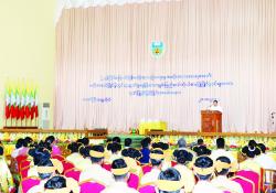 နိုင်ငံ့ဝန်ထမ်းတက္ကသိုလ် (အောက် မြန်မာပြည်) အရာထမ်းအခြေခံ သင်တန်းအမှတ်စဉ်(၂၁၄)သင်တန်း ဆင်းပွဲအခမ်းအနားကို ယနေ့ နံနက်ပိုင်းက စစ်ရေးပြကွင်း၌ …