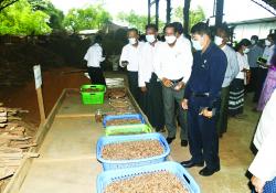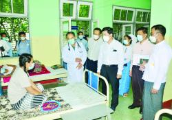 အလုပ်သမားဝန်ကြီးဌာန   ပြည်ထောင်စုဝန်ကြီး   ဒေါက်တာပွင့်ဆန်းသည်   မန္တလေးတိုင်းဒေသကြီး လူမှုရေးရာဝန်ကြီး ဦးယဉ်ထွေး၊ တာဝန်ရှိသူများနှင့်အတူ…