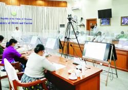 လူဝင်မှုကြီးကြပ်ရေးနှင့် ပြည်သူ့အင်အားဝန်ကြီးဌာန ပြည်ထောင်စုဝန်ကြီး ဦးခင်ရီသည် အမြဲတမ်း အတွင်းဝန် ဦးအောင်ကျော်စိုး၊ တာဝန်ရှိသူများနှင့်အတူ…