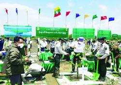 ဧရာဝတီတိုင်းဒေသကြီး ဒီရေ တော သစ်ပင်စိုက်ပျိုးပွဲကို ယနေ့ မွန်းလွဲပိုင်းတွင် ဘိုကလေးမြို့ ကဒုံကနိကြိုးဝိုင်း၌ ပြုလုပ်ရာ တိုင်းဒေသကြီး …