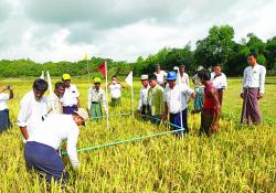 ရခိုင်ပြည်နယ် မောင်တောခရိုင် ဘူးသီးတောင်မြို့နယ် လက်ဝဲ ဒက်ပြင်ရှည် ကျေးရွာအုပ်စု၌ နွေစပါးအထွက်နှုန်း တိကျမှန်ကန် ရေးအတွက် စံကွက်ရိတ်သိမ်းနေ…