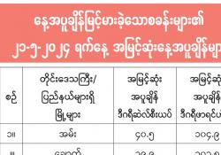 ယနေ့ မွန်းလွဲ ၁ နာရီခွဲ တိုင်းထွာချက်များအရ မေ ၂၃ ရက်မှ ၂၇ ရက်အတွင်း ဘင်္ဂလားပင်လယ်အော်တွင် ဖြစ်ပေါ်လာနိုင် သည့် လေဖိအားနည်းရပ်ဝန်း၏ အရှိန်ကြောင့် …