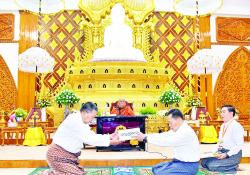 ၂၀၂၄ ခုနှစ် ကဆုန်လပြည့်ဗုဒ္ဓနေ့ အထိမ်းအမှတ်အဖြစ် ဆင်ယင်ကျင်းပပူဇော်သည့် မဟာမင်္ဂလာအခမ်းအနားများသို့ ကြွရောက်တော်မူကြသည့် ဆရာတော်ကြီးများအား နိုင်ငံတော်စီမံအုပ်ချုပ်ရေးကောင်စီဥက္ကဋ္ဌ …