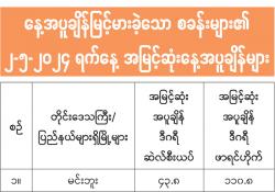 စစ်ကိုင်းတိုင်းဒေသကြီး မုံရွာမြို့ တွင် မေ ၁ ရက် ညနေ ၄ နာရီ မိနစ် ၂၀ က လေပြင်း တိုက်ခတ်ပြီး မိုးသည်းထန်စွာ…