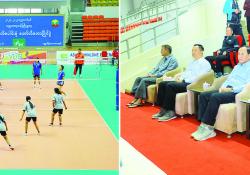 အားကစားနှင့်လူငယ်ရေးရာဝန်ကြီးဌာန ပြည်ထောင်စု ဝန်ကြီး ဦးမင်းသိန်းဇံသည် ဒုတိယဝန်ကြီး ဦးမျိုးလှိုင်၊ တာဝန်ရှိသူများနှင့်အတူ …