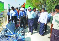 နွေစပါးသီးနှံကို ကောက်စိုက် စက်၊ မျိုးစေ့ချကိရိယာများဖြင့် စိုက်ပျိုးပြသခြင်း ကွင်းသရုပ်ပြပွဲ နှင့် မြေဩဇာထောက်ပံ့ပေးအပ်ပွဲ…
