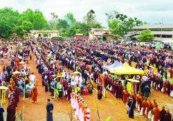 မြန်မာနိုင်ငံလုံးဆိုင်ရာ တတိယအကြိမ်မြောက် နာဂပုရသာသနာလင်္ကာရ သာမဏေ ကျော်စာမေးပွဲ ဖြေဆိုအောင်မြင်သည့် သံဃာများနှင့်သီလရှင်များအား ဆွမ်းဆန်စိမ်း…