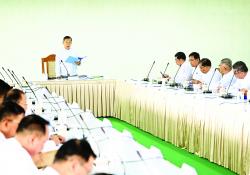 ကရင်ပြည်နယ်ဝန်ကြီးချုပ် ဦးစောမြင့်ဦး၊ ပြည်နယ်ဝန်ကြီးများနှင့် ဌာနဆိုင်ရာတာဝန်ရှိသူများသည် ဇူလိုင် ၁၈ ရက်က ဘားအံမွေးမြူရေးဇုန် ရှင်းလင်းဆောင်၌ ဒေသတွင်း…