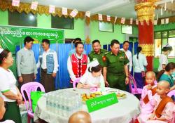 ရခိုင်ပြည်နယ်ဝန်ကြီးချုပ် ကူညီကယ်ဆယ်ရေးနှင့် ပြန်လည်ထူထောင်ရေးလုပ်ငန်းများတွင် ကူညီခဲ့ကြသည့် ရဲတပ်ဖွဲ့ဝင်များအား ဂုဏ်ပြုချီးမြှင့်ငွေနှင့် ထောက်ပံ့ပစ္စည်းများပေးအပ်၊…