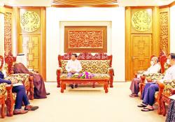 မကွေးတိုင်းဒေသကြီး ဝန်ကြီးချုပ် ဦးတင့်လွင် သည် လုံခြုံရေးနှင့် နယ်စပ်ရေးရာဝန်ကြီး ဗိုလ်မှူးကြီး ကျော်ကျော်လင်း၊ အတွင်းရေးမှူး ဦးသန်းဆွေဝင်းတို့နှင့်အတူ…