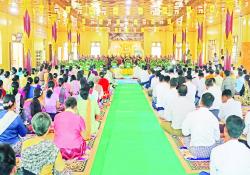 နေပြည်တော်တိုင်းစစ်ဌာနချုပ်၏ အသံမစဲမဟာပဋ္ဌာန်းရွတ်ဖတ်ပူဇော်ပွဲ အောင်ပွဲကို ယနေ့နံနက်ပိုင်း တွင် တိုင်းစစ်ဌာနချုပ် အောင်ငြိမ်းအေးခန်းမ၌ ပြုလုပ်ရာ…