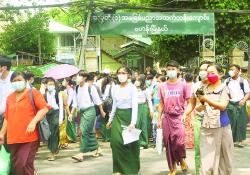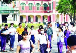 ၂၀၂၂- ၂၀၂၃ ခုနှစ် ပညာသင်နှစ် တက္ကသိုလ်ဝင် စာမေးပွဲတွင် ရန်ကုန်တိုင်းဒေသကြီး အ.ထ.က (၆) ဗိုလ်တထောင်စာစစ်ဌာန၌ အင်္ဂလိပ်ဘာသာရပ် ကို ဖြေဆိုပြီး ကျောင်းသား ကျောင်းသူများ ပြန်လည်ထွက်ခွာလာစဉ်…