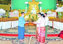 နေပြည်တော်ကောင်စီက ကြီးမှူး၍ နေပြည်တော်ကောင်စီဥက္ကဋ္ဌ ဦးတင်ဦးလွင်နှင့် ဇနီး ဒေါ်မေမြင့်မောင် တို့အမှူးပြု၍ မိတ်ဆွေသင်္ဂဟများက လှူဒါန်းသည့်…