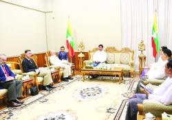 နိုင်ငံတော်စီမံအုပ်ချုပ်ရေးကောင်စီဝင်၊ ပို့ဆောင်ရေးနှင့် ဆက်သွယ်ရေးဝန်ကြီးဌာန ပြည်ထောင်စုဝန်ကြီး ဗိုလ်ချုပ်ကြီးတင်အောင်စန်းသည် ရုရှား-မြန်မာ…