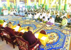 လေးဆူဓာတ်ပုံရွှေတိဂုံစေတီတော်မြတ်ကြီးတွင် ဆရာတော်ကြီးများက အတွင်းအောင်ခြင်းရှစ်ပါး ပါဠိတော်၊အပြင်အောင်ခြင်းရှစ်ပါး ပါဠိတော် နှင့် ဓဇဂ္ဂသုတ်တရားတော်များ…