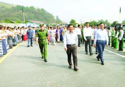 ရှမ်းပြည်နယ် (အရှေ့ပိုင်း) ကျိုင်းတုံမြို့ မြို့ရှောင်လမ်းဖွင့်ပွဲအခမ်းအနားကို ယနေ့နံနက်ပိုင်းတွင် အဆိုပါလမ်းနေရာ၌ ကျင်းပပြုလုပ်ရာ …