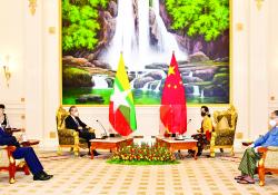 …တပ်မတော်ကာကွယ်ရေးဦးစီးချုပ် ဗိုလ်ချုပ်မှူးကြီးမင်းအောင်လှိုင် တရုတ်ပြည်သူ့သမ္မတနိုင်ငံနိုင်ငံတော်ကောင်စီဝင်နှင့် နိုင်ငံခြားရေးဝန်ကြီး မစ္စတာ ဝမ်ယိအား လက်ခံတွေ့ဆုံ