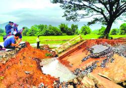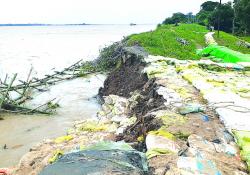 ဧရာဝတီမြစ်ရေကျဆင်းချိန် မြန်အောင်မြို့ အမှတ်(၁)ရပ်ကွက်၊ မြန်အောင်တာမိုင် ၆/၃ နှင့် ၆/၄ အကြား၌ ယမန်နေ့က အလျား ပေ ၁၀၀ ခန့်၊ အနံ သုံးပေခန့်…