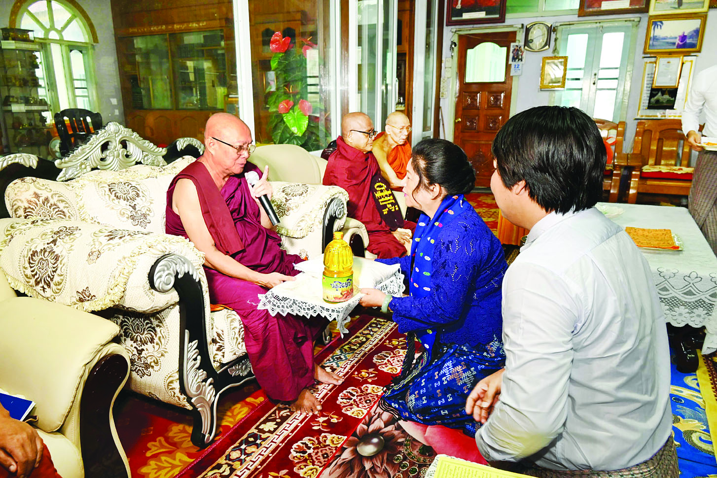 တွေ့ဆုံစဉ် နိုင်ငံတော်စီမံ အုပ်ချုပ်ရေးကောင်စီ အဖွဲ့ဝင်က တိုင်းပြည် တည်ငြိမ်အေးချမ်းရေး၊ တရားဥပဒေစိုးမိုးရေးနှင့် ငြိမ်းချမ်း ရေးရရှိရေး၊ ဘာသာရေးအသင်း အဖွဲ့များမှ ဆရာတော်၊ သိက္ခာ တော်ရဆရာများအနေဖြင့် ပူးပေါင်း ဆောင်ရွက်ကြရန် လိုအပ်ပါ ကြောင်းနှင့် ဘာသာရေးဆိုင်ရာ လိုအပ်ချက်များကိုလည်း အတတ် နိုင်ဆုံးနှင့် အကောင်းဆုံး ဖြည့်ဆည်းဆောင်ရွက်ပေးလျက် ရှိကြောင်း ရှင်းလင်းပြောကြား သည်။