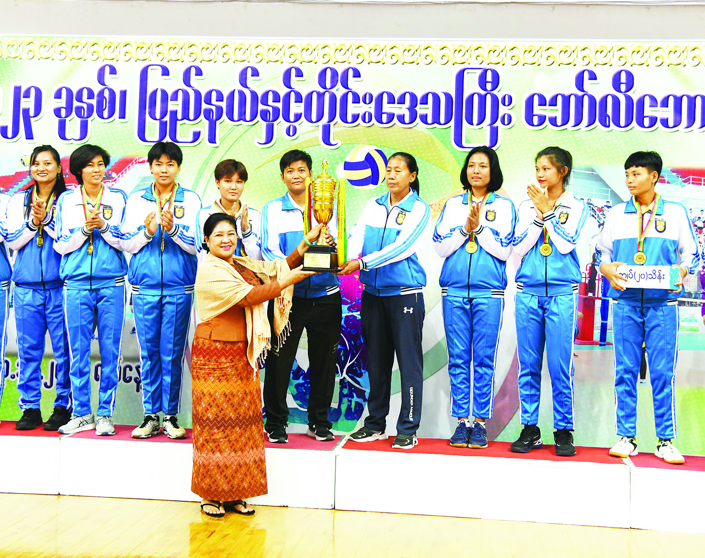ဆက်လက်၍ ပြည်ထောင်စု ဝန်ကြီး ဦးဉာဏ်ထွန်းနှင့် ဒေါက်တာ ချာလီသန်းတို့က ပြည်နယ်နှင့် တိုင်းဒေသကြီး ဘော်လီဘော (အမျိုးသမီး)ပြိုင်ပွဲ တွင် ပူးတွဲတတိယဆု ရရှိကြ သည့် ရန်ကုန်တိုင်းဒေသကြီး အသင်းနှင့် ရှမ်းပြည်နယ်အသင်း တို့ကို တစ်ဦးချင်းဆုတံဆိပ်နှင့် ဂုဏ်ပြုဆုငွေတို့ကို လည်းကောင်း၊ နိုင်ငံတော် စီမံအုပ်ချုပ်ရေး ကောင်စီအဖွဲ့ဝင် ဦးရွှေကြိမ်းက ဒုတိယဆုရရှိသည့် ကချင် ပြည်နယ်အသင်းကို တစ်ဦးချင်း ဆုတံဆိပ်နှင့် ဂုဏ်ပြုဆုငွေတို့ကို လည်းကောင်း၊ နိုင်ငံတော်စီမံ အုပ်ချုပ်ရေးကောင်စီ အဖွဲ့ဝင် ဒေါ်ဒွဲဘူ (အပေါ်ပုံ) နှင့် ဒေါက်တာ မှုထန်တို့က ပထမဆုရရှိသည့် မန္တလေးတိုင်း ဒေသကြီးအသင်းကို တစ်ဦးချင်း ဆုတံဆိပ်၊ ဂုဏ်ပြု ဆုငွေနှင့် တံခွန်စိုက်ဆုဖလား တို့ ကိုလည်းကောင်း ပေးအပ်ချီးမြှင့် ကြသည်။