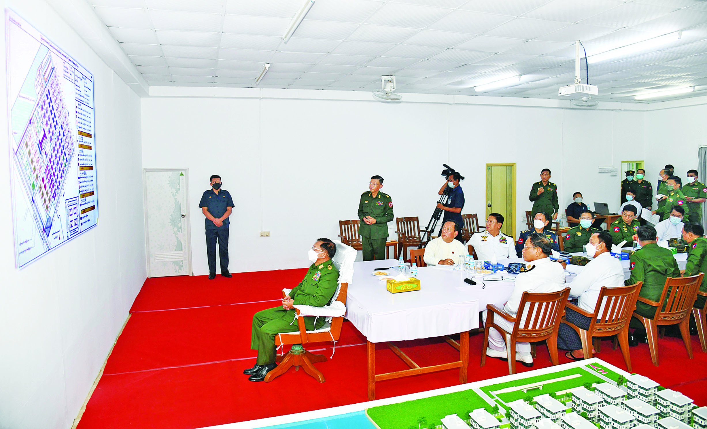 ရှင်းလင်းတင်ပြမှုများအပေါ် နိုင်ငံတော်စီမံ အုပ်ချုပ်ရေးကောင်စီဥက္ကဋ္ဌ တပ်မတော်ကာကွယ်ရေး ဦးစီးချုပ်က အိမ်ရာအတွင်းပြီးစီးပြီးဖြစ်သည့် အခန်း များ၌ စစ်မှုထမ်းဟောင်းများနှင့် မိသားစုဝင်များ ရောက်ရှိနေထိုင်လျက်ရှိပြီဖြစ်သော်လည်း ရောက်ရှိ နေထိုင်ရန် ကျန်ရှိနေသူများအားလုံး ရောက်ရှိနေထိုင် နိုင်ရေး ဆောင်ရွက်ပေးရမည်ဖြစ်ကြောင်း၊ မြို့ပြစီမံ ကိန်းအသွင် ဆောင်ရွက်နေခြင်းဖြစ်သဖြင့် မိသားစု ဝင်များ၏ ပညာရည်မြှင့်တင်ရေးလုပ်ငန်းများကို လည်း ဆောင်ရွက်ပေးရမည်ဖြစ်ကြောင်း၊ စီမံကိန်း အတွင်း စိုက်ပျိုးမွေးမြူရေးကို အခြေခံသည့် လုပ်ငန်း များ၊ အသက်မွေးဝမ်းကျောင်းသင်တန်းနှင့် အလုပ် အကိုင်များ၊ စက်မှုအထက်တန်းကျောင်း၊ စိုက်ပျိုး မွေးမြူရေး အထက်တန်းကျောင်းများကို ဆောင်ရွက် ပေးနိုင်ရေး ရည်မှန်းဆောင်ရွက်လျက်ရှိသဖြင့် ပညာရည်မြှင့်တင်ရေးလုပ်ငန်းများကို အလေးထား ဆောင်ရွက်ပေးရန် လိုကြောင်း၊ အိမ်ရာတွင် နေထိုင် သူများ လူနေမှုအဆင့်မြှင့်တင်နိုင်ရေးအတွက် စနစ်ကျနသည့် အဆင့်မီ Shopping Mall တစ်ခုကို ဆောင်ရွက်ပေးရမည်ဖြစ်ကြောင်း၊ အိမ်ရာအတွင်း နေထိုင်သည့် စစ်မှုထမ်းဟောင်းများ၊ မိသားစုဝင်များ အတွက် အသက်အရွယ်အလိုက် လုပ်ကိုင်နိုင်မည့် လုပ်ငန်းများ လာရောက်ရင်းနှီးမြှုပ်နှံနိုင်ရေး ဆောင် ရွက်ပေးရမည်ဖြစ်ကြောင်း၊ စီမံကိန်းဧရိယာအတွင်း မွေးမြူရေးလုပ်ငန်းများအတွက် လိုအပ်သည့် စားကျက်မြေများ ဖြစ်ပေါ်လာစေရေး ယခုကတည်း က ကြိုတင်ပြင်ဆင်ခြင်းလုပ်ငန်းများကို ဆောင်ရွက် ထားရန်လိုကြောင်း၊ နေရာအကျယ်အဝန်းများစွာ မယူသည့် ခေတ်မီမွေးမြူရေးလုပ်ငန်းများ ဆောင် ရွက်နိုင်ရေး ကြိုတင်ပြင်ဆင်ကြရမည်ဖြစ်ကြောင်းနှင့် လမ်းပန်းဆက်သွယ်မှုလွယ်ကူရေး၊ လမ်းများ ကောင်းမွန်ရေးတို့အတွက် လိုအပ်သည်များကို မှာကြားရာ သမဝါယမနှင့် ကျေးလက်ဖွံ့ဖြိုးရေး ဝန်ကြီးဌာန ပြည်ထောင်စုဝန်ကြီး၊ ရန်ကုန်တိုင်း ဒေသကြီး ဝန်ကြီးချုပ်၊ ကာကွယ်ရေးဦးစီးချုပ်ရုံးမှ တပ်မတော်အရာရှိကြီးများ၊ မြို့တော်ဝန်၊ မြန်မာနိုင်ငံ စစ်မှုထမ်းဟောင်းအဖွဲ့ဒုတိယဥက္ကဋ္ဌနှင့် ရန်ကုန်တိုင်း ဒေသကြီး စစ်မှုထမ်းဟောင်းအဖွဲ့ဝင်တို့က မြို့ပြ စနစ်တွင် ပါဝင်သင့်သည့်အချက်များ ပါဝင်နိုင်ရေး၊ ရေစွန့်ထုတ်သည့်စနစ် ကောင်းမွန်စေရေး၊ ပညာရေး၊ ကျန်းမာရေးနှင့် အလုပ်အကိုင်အခွင့်အလမ်း ဖော်ဆောင်ရေးတို့အတွက် အကောင်အထည်ဖော် ဆောင်ရွက်နိုင်မည့် အခြေအနေများကို အကြံပြု ဆွေးနွေးတင်ပြကြသည်။ အကြံပြုတင်ပြချက်များ အပေါ် နိုင်ငံတော်စီမံအုပ်ချုပ်ရေးကောင်စီဥက္ကဋ္ဌ တပ်မတော်ကာကွယ်ရေးဦးစီးချုပ်က လိုအပ်သည် များ ပြန်လည်ဆွေးနွေးသည်။