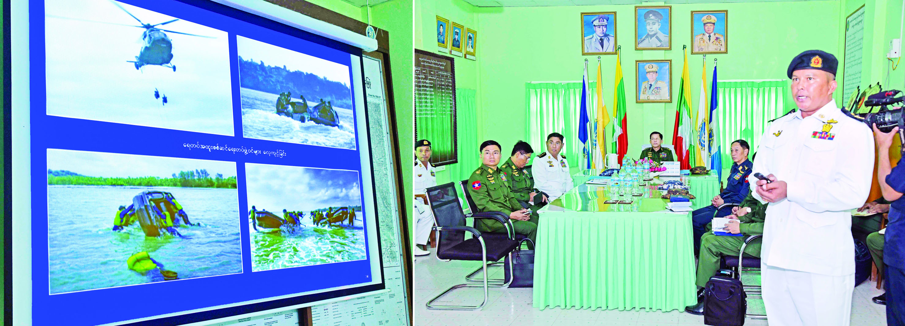 နိုင်ငံတော်စီမံအုပ်ချုပ်ရေးကောင်စီဥက္ကဋ္ဌ တပ်မတော် ကာကွယ်ရေးဦးစီးချုပ် ဗိုလ်ချုပ်မှူးကြီး မင်းအောင်လှိုင် သည် ဇနီး ဒေါ်ကြူကြူလှ၊ ညှိနှိုင်းကွပ်ကဲရေးမှူး (ကြည်း၊ ရေ၊ လေ) ဗိုလ်ချုပ်ကြီး မောင်မောင်အေးနှင့် ဇနီး၊ ကာကွယ်ရေးဦးစီးချုပ် (ရေ) ဗိုလ်ချုပ်ကြီး မိုးအောင်နှင့် ဇနီး၊ ကာကွယ်ရေးဦးစီးချုပ်(လေ) ဗိုလ်ချုပ်ကြီး ထွန်းအောင်နှင့် ဇနီး၊ ကာကွယ်ရေး ဦးစီးချုပ်ရုံးမှ တပ်မတော်အရာရှိကြီးများနှင့် ဇနီး များ၊ အနောက်ပိုင်းတိုင်းစစ်ဌာနချုပ်တိုင်းမှူး ဗိုလ်ချုပ် ထင်လတ်ဦးနှင့် တာဝန်ရှိသူများလိုက်ပါ၍ ယနေ့ နံနက်ပိုင်းတွင် ရခိုင်ပြည်နယ် သံတွဲမြို့အနီးရှိ နယ်မြေခံပင်မရေငုပ်နှင့် ဆယ်ယူရေးတပ်၏ လေ့ကျင့် ရေးဆောင်ရွက်နေမှုများနှင့် တပ်တည်ဆောက် ရေးလုပ်ငန်းများ အကောင်အထည်ဖော်ဆောင်ရွက် နေမှုများကို သွားရောက်ကြည့်ရှုစစ်ဆေးသည်။
