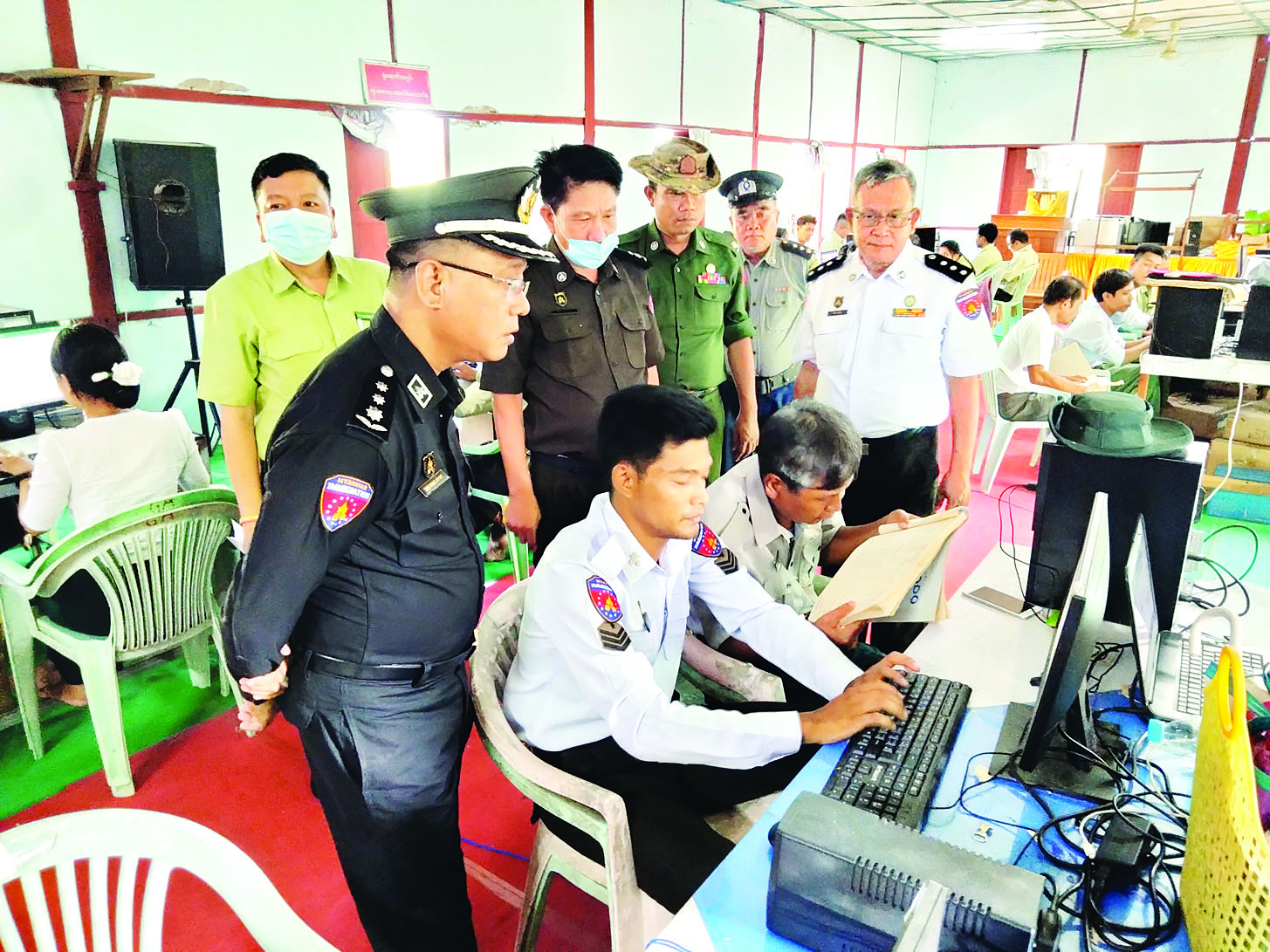 မကွေးတိုင်းဒေသကြီး နတ်မောက်မြို့နယ်တွင်  e-ID စနစ် Excel Format ဖြင့် နိုင်-၄ မှတ်တမ်း များ စိစစ်ဖြည့်သွင်းခြင်းနှင့် မြေပြင်လူဦးရေ စာရင်းတိုက်ဆိုင်စစ်ဆေးခြင်းလုပ်ငန်းများကို မြို့နယ်အထွေထွေ    အုပ်ချုပ်ရေးဦးစီးဌာန အစည်းအဝေးခန်းမ၌ ဆောင်ရွက်လျက်ရှိရာ လုပ်ငန်းဆောင်ရွက်နေမှုကို  တိုင်းဒေသကြီး   လူမှုရေးရာဝန်ကြီး   လူဝင်မှုကြီးကြပ်ရေးနှင့် ပြည်သူ့အင်အားဝန်ကြီးဌာနဦးစီးမှူး  ညွှန်ကြား ရေးမှူး ဦးစိုးပိုင်မြင့်က  မေ  ၁၄  ရက်က ကွင်းဆင်းစစ်ဆေးသည်။