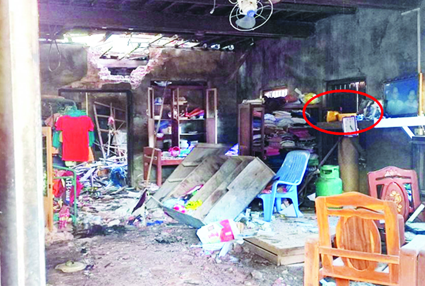 တနင်္သာရီတိုင်းဒေသကြီး ပုလောမြို့နယ် ပလမြို့ အမှတ်(၃)ရပ်ကွက် ရပ်ကွက်အုပ်ချုပ်ရေးမှူးနေအိမ်မှ ရွှေထည်ပစ္စည်းမျိုးစုံ အလေးချိန် ၁၆ ကျပ် ၁ မတ်သားခန့်နှင့် ငွေကျပ်သိန်း ၃၀ ခန့်တို့ကို PDF အမည်ခံ အကြမ်းဖက်သမားများက သေနတ်ပြခြိမ်းခြောက်ယူဆောင်ပြီး နေအိမ် အား မိုင်းခွဲဖျက်ဆီးခဲ့ကြောင်း သိရှိရသည်။