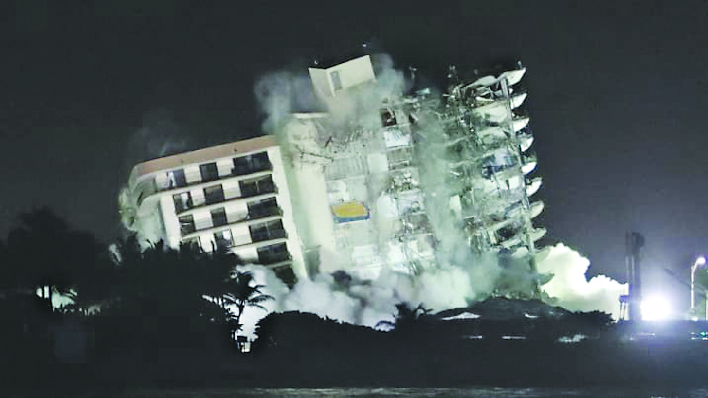 အမေရိကန်ပြည်ထောင်စုဖလော်ရီဒါရှိ ပြိုကျခဲ့သည့်ကွန်ဒို၏ ကျန်ရှိနေသည့် အစိတ်အပိုင်းများကို အပြည့် အဝ ဖြိုချမှုပြုလုပ်ခဲ့သည်ဟု သိရသည်။ ပျောက်ဆုံးနေသည့် ၁၁၈ ဦးကို ဆက်လက်ရှာဖွေနိုင်ရေးအတွက် ရှင်းလင်းမှုများ လုပ်ဆောင်နိုင်ရန် ကျန်ရှိနေသည့် အစိတ်အပိုင်းများကို ဇူလိုင် ၄ ရက်က ဖြိုချခဲ့ခြင်းဖြစ်သည်။ ကျန်ရှိနေသည့် အဆောက်အအုံတစ်စိတ်တစ်ပိုင်းကို ဖြိုချနိုင်ရေးဖောက်ခွဲရေးပစ္စည်းမျာကို အသုံးပြုခဲ့သည်ဟု သိရသည်။