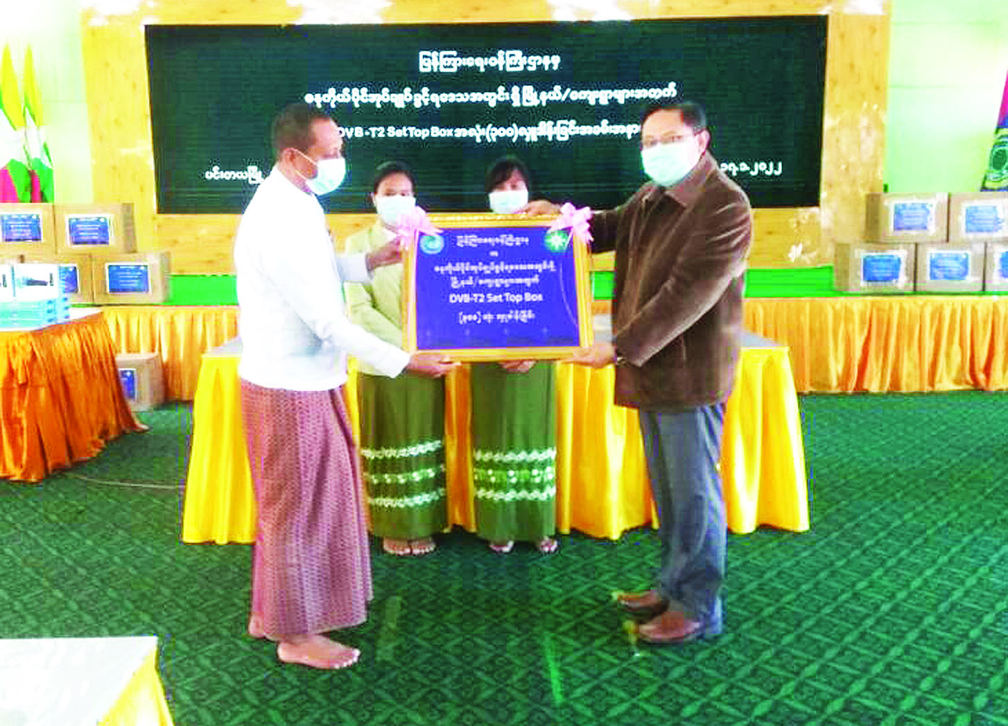 ပြန်ကြားရေးဝန်ကြီးဌာနက ဓနုကိုယ်ပိုင်အုပ်ချုပ်ခွင့်ရဒေသအတွင်းရှိ ပြည်သူများအတွက် DVB-T2 Set Top Box အလုံး ၃၀၀ ပေးအပ်လှူဒါန်း