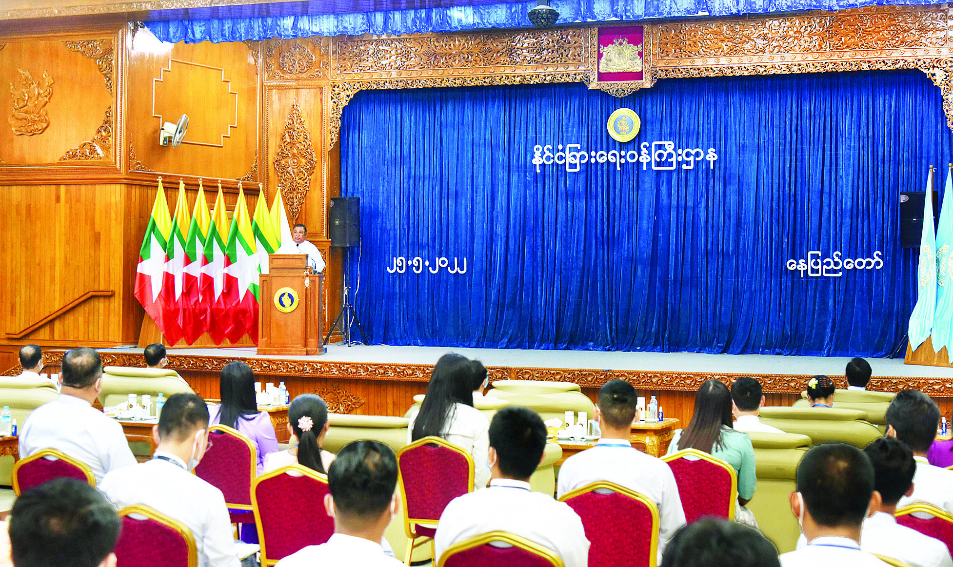 အခမ်းအနားတွင် နိုင်ငံခြား ရေးဝန်ကြီးဌာန ပြည်ထောင်စု ဝန်ကြီးက နိုင်ငံတော်မှ ချမှတ် ထားသည့် နိုင်ငံခြားရေးမူဝါဒနှင့် အညီ နိုင်ငံ့အကျိုးသယ်ပိုးရာတွင် သံတမန်များသည် ဘာသာရပ် ဆိုင်ရာ ကျွမ်းကျင်သည့် သံတမန် များအဖြစ် နိုင်ငံတကာနှင့် ရင်ပေါင်တန်းနိုင်ရန်၊ နိုင်ငံ့အကျိုး ကို သယ်ပိုးနိုင်မည့် သားကောင်း တမန်များဖြစ်လာစေရန် ရည်ရွယ် ပြီး ပညာသင်များကို စေလွှတ်ခဲ့ခြင်း ဖြစ်ကြောင်း၊ လက်ရှိ နိုင်ငံတကာ အခြေအနေများအရ အင်အားကြီး နိုင်ငံများ၏ အားပြိုင်မှုများအကြား မိမိတို့နိုင်ငံ၏ အမျိုးသားရေး အကျိုးစီးပွားနှင့် အချုပ်အခြာ အာဏာပိုင်ဆိုင်မှုကို ကာကွယ် စောင့်ရှောက်ရာတွင် လည်း ကောင်း၊ နိုင်ငံခြားရေးမူဝါဒ ကို အကောင်အထည်ဖော်ရာတွင် လည်းကောင်း၊ ဝန်ထမ်းများ ရရှိလာသည့် အတွေ့အကြုံနှင့် ကျွမ်းကျင်မှုများကို အခြေခံ၍ နိုင်ငံတော်မှ ချမှတ်ထားသည့် မူဝါဒ၊ လမ်းညွှန်ချက်များနှင့် အညီ ဆောင်ရွက်သွားကြရန်ဖြစ် ကြောင်း၊ ပြည်ပရှိ မြန်မာသံရုံး များသို့ သွားရောက် တာဝန်ထမ်း ဆောင်ရသည့် အခါတွင်လည်း နိုင်ငံ့ဝန်ထမ်း စည်းမျဉ်းစည်းကမ်း၊ ကျင့်ဝတ်များနှင့်အညီ တာဝန် ကျေပွန်အောင် ထမ်းဆောင်သွား ကြရန်ဖြစ်ကြောင်း၊ ဝန်ကြီးဌာန သည် ဝန်ထမ်းများ၏ လူ့စွမ်းအား အရင်းအမြစ်များ မြှင့်တင်ရေး ကို ဆောင်ရွက်ပေးနေသကဲ့သို့ ဝန်ထမ်းများဘက်မှလည်း နိုင်ငံ့ အကျိုးပြုနိုင်စေရေး ဆောင်ရွက် ပေးရန်လိုအပ်ကြောင်း၊ ယခုကဲ့သို့ နိုင်ငံတကာမှရရှိသော မဟာဘွဲ့ များကို အောင်မြင်ပြီးမြောက် အောင် တက်ရောက်ခဲ့ကြသည့် ဝန်ထမ်းများကို ဂုဏ်ပြုပါကြောင်း ပြောကြားသည်။