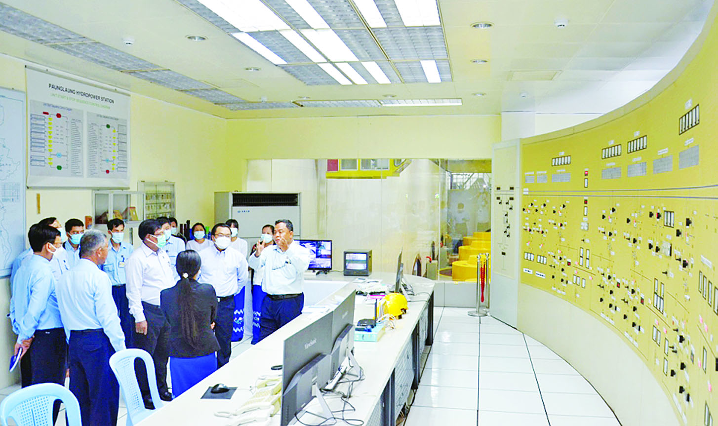 ထို့နောက် ပြည်ထောင်စုဝန်ကြီးနှင့်အဖွဲ့သည် လျှပ်စစ်ဓာတ်အားထုတ်လုပ်ရေးလုပ်ငန်း၊ ပေါင်းလောင်း ရေအားလျှပ်စစ်ဓာတ်အားပေးစက်ရုံသို့ ရောက်ရှိရာ စက်ရုံအစည်းအဝေးခန်းမတွင် စက်ရုံမှူးက ဓာတ်အားပေးစက်ရုံဆိုင်ရာ အချက်အလက်များ၊ လျှပ်စစ်ဓာတ်အားထုတ်လုပ်နေမှု၊ ရေလှောင်တမံ အတွင်း ရေဝင်ရောက်မှု၊ ရေသိုလှောင်ထားရှိမှုနှင့် နိုင်ငံတော်ဓာတ်အားစနစ်သို့ချိတ်ဆက်၍ လျှပ်စစ် ဓာတ်အားများ ပို့လွှတ်ဖြန့်ဖြူးပေးနေမှု အခြေအနေ များကို ရှင်းလင်းတင်ပြရာ လျှပ်စစ်ဓာတ်အား ထုတ်လုပ်ရေးလုပ်ငန်း ဦးဆောင်ညွှန်ကြားရေးမှူး ဦးဟိန်းထက်က ဖြည့်စွက်ရှင်းလင်းတင်ပြသည်။