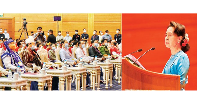 (နိုင်ငံတော်၏အတိုင်ပင်ခံပုဂ္ဂိုလ် ဒေါ်အောင်ဆန်း စုကြည် ပြောကြားသည့် မိန့်ခွန်းအပြည့်အစုံကို စာမျက်နှာ ၅၊ ၆ တွင် သီးခြား ဖော်ပြထားပါသည်။)