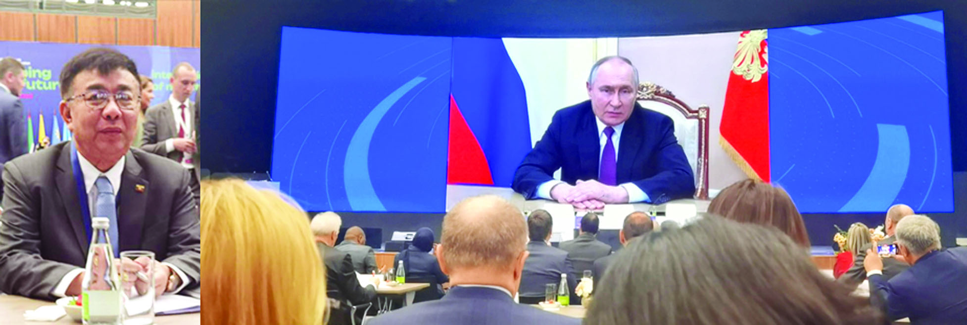 ဖွင့်ပွဲအခမ်းအနားတွင် ရုရှား သမ္မတ ဗလာဒီမာပူတင်က virtual စနစ်ဖြင့် အဖွင့်အမှာ စကားပြောကြားသည်။