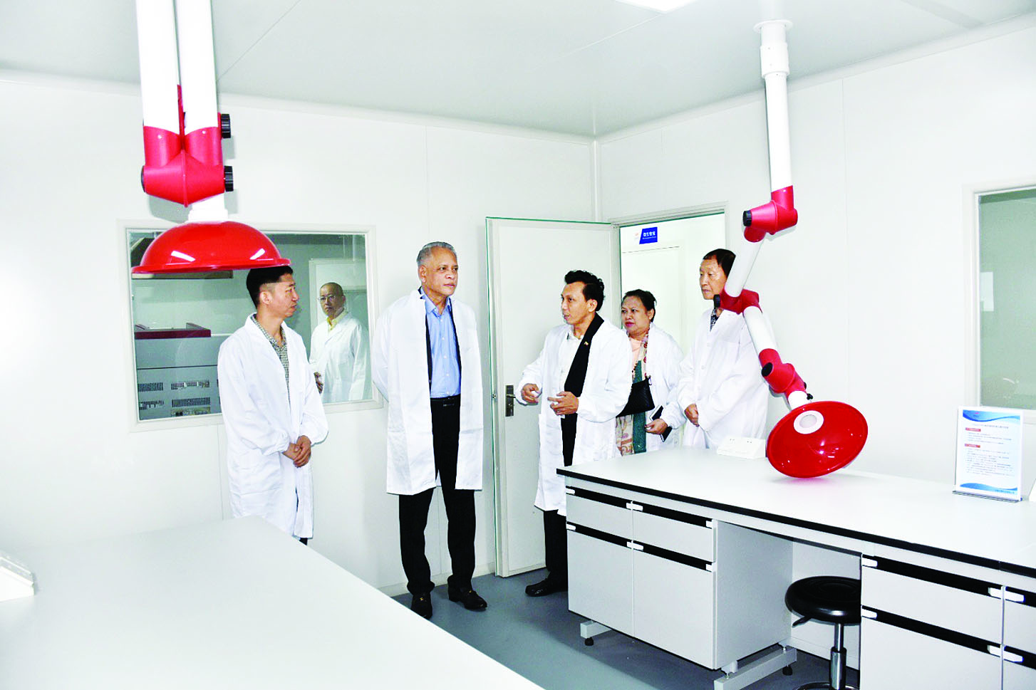 တရုတ်ပြည်သူ့သမ္မတနိုင်ငံ ကူမင်း မြို့၌ ကျင်းပပြုလုပ်မည့် “(၇)ကြိမ် မြောက် တရုတ် - တောင်အာရှ ကုန်စည်ပြပွဲနှင့် (၂၇) ကြိမ်မြောက် တရုတ်(ကူမင်း) ပို့ကုန်/သွင်းကုန် ကုန်စည်ပြပွဲ”သို့ တက်ရောက်ရန် ကူမင်းမြို့၌ ရောက်ရှိနေသော စီးပွားရေးနှင့် ကူးသန်းရောင်းဝယ် ရေးဝန်ကြီးဌာန ပြည်ထောင်စု ဝန်ကြီး ဦးအောင်နိုင်ဦးသည် ယနေ့ ဒေသစံတော်ချိန် နံနက် ၉ နာရီခွဲတွင် ယူနန်စက်မှုဖွံ့ဖြိုးရေးဇုန်၌တည်ရှိသော ယူနန်ပန် တက်စ် နည်းပညာကုမ္ပဏီ ( Yunnan Pan Test Technology Company) သို့ သွားရောက် လေ့လာရာ ကုမ္ပဏီမှတာဝန်ရှိသူ များက လယ်ယာထွက်ကုန်များ စမ်းသပ်စစ်ဆေးနေမှု အခြေအနေ ကို လိုက်လံရှင်းလင်းပြသသည်။