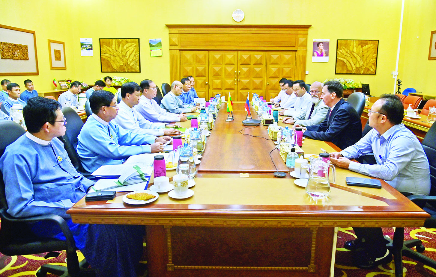 သယံဇာတနှင့် သဘာဝပတ်ဝန်း ကျင်ထိန်းသိမ်းရေး ဝန်ကြီးဌာန ပြည်ထောင်စုဝန်ကြီး ဦးခင်မောင်ရီ သည် ရုရှား-မြန်မာချစ်ကြည်ရေး နှင့် ပူးပေါင်းဆောင်ရွက်ရေး အသင်းဥက္ကဋ္ဌ မစ္စတာ အန်နာသိုလီ ဘူးလော့ခ်ျနိကော့ ဦးဆောင်သည့် ကိုယ်စားလှယ်အဖွဲ့ကို ယနေ့ နံနက် ၉ နာရီခွဲတွင် နေပြည်တော် ရုံးအမှတ်-၂၈ ရှိ အစည်းအဝေး ခန်းမ၌ လက်ခံတွေ့ဆုံသည်။