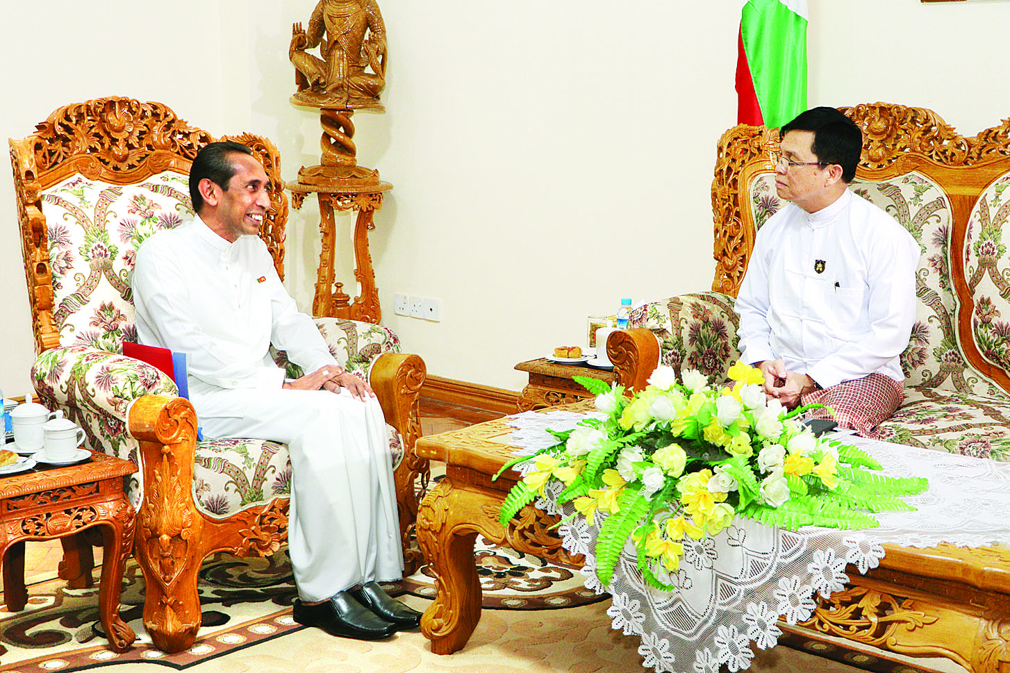 ပြည်ထောင်စုဝန်ကြီး ဦးမြင့်ကြိုင် မြန်မာနိုင်ငံဆိုင်ရာ သီရိလင်္ကာသံအမတ်ကြီး H.E. Mr. J.M.J.P Bandara အား လက်ခံတွေ့ဆုံ