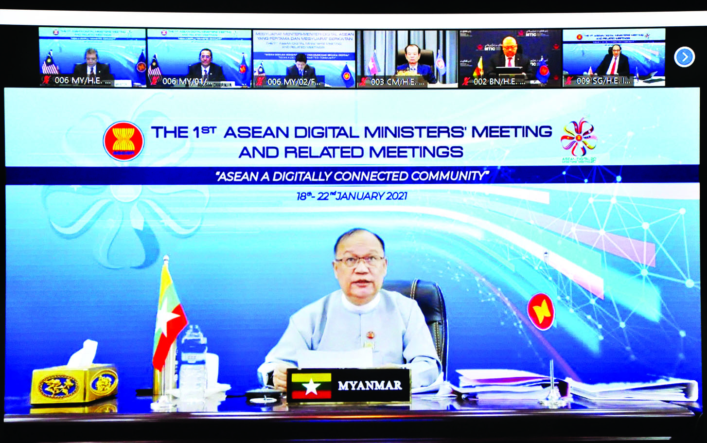 ပထမအကြိမ် အာဆီယံဒစ်ဂျစ် တယ်ဆိုင်ရာ ဝန်ကြီးများအစည်း အဝေးကို “ASEAN – a Digitally Connected Community” ခေါင်းစဉ် ဖြင့် မလေးရှားနိုင်ငံက အိမ်ရှင်နိုင်ငံ အဖြစ် တာဝန်ယူ၍ ၂၀၂၁ ခုနှစ် ဇန်နဝါရီ ၂၁ ရက်မှ ၂၂ ရက်အထိ ကျင်းပခဲ့ပြီး ဒစ်ဂျစ်တယ်ကဏ္ဍ ဖွံ့ဖြိုး တိုးတက်မှုများနှင့် ပြောင်းလဲတိုးတက် လာသည့် နည်းပညာဆိုင်ရာ ကိစ္စရပ် များအပေါ် အမြင်များ ဆွေးနွေးဖလှယ် ခြင်း၊ ကိုဗစ်-၁၉ ကမ္ဘာ့ကပ်ရောဂါ ကာလအတွင်း work from home ပုံစံဖြင့် ဒစ်ဂျစ်တယ်စီးပွားရေးများကို တိုးမြှင့်ဆောင်ရွက်နိုင်မည့် အခွင့် အလမ်းအား ဖြည့်ဆည်းဆောင်ရွက်ပေးနိုင်မည့် ကိစ္စရပ်များအပေါ် ဆွေးနွေးခြင်း၊ ဒစ်ဂျစ်တယ်နည်းပညာ ၏ ပိုမိုအရေးပါမှုအခြေအနေများနှင့် ကိုဗစ်-၁၉ ကမ္ဘာ့ကပ်ရောဂါ အလွန် ကာလများအတွက် အဖွဲ့ဝင်နိုင်ငံများ မှ ချမှတ်ဆောင်ရွက်လျက်ရှိသော အစီအစဉ်များကို ဆွေးနွေးခြင်း၊ ဒစ်ဂျစ်တယ်နည်းပညာဆိုင်ရာ အသုံးပြု မှု မြင့်မားလာသည်နှင့်အမျှ ဆိုက်ဘာ လုံခြုံရေးကိစ္စရပ်များ အရေးကြီး လာခြင်းတို့အပေါ် အမြင်များဖလှယ် ဆွေးနွေးခြင်း၊ အာဆီယံဒေသတွင်း ဒစ်ဂျစ်တယ် အသွင်ကူးပြောင်းမှု ဖြင့် ဒစ်ဂျစ်တယ် အသိုက်အဝန်း ဖော်ဆောင်ရေးအတွက် ASEAN Digital Masterplan 2025 – ADM 2025 အား အတည်ပြုထုတ်ပြန်ခြင်း၊ ၂၀၂၁ ခုနှစ်တွင် ဆက်လက်ဆောင်ရွက် မည့် လုပ်ငန်းစဉ်များနှင့် စပ်လျဉ်း၍ ဆွေးနွေးအတည်ပြု ထုတ်ပြန်ခြင်း၊ ဆွေးနွေးဖက်နိုင်ငံများ ဖြစ်သည့် တရုတ်ပြည်သူ့သမ္မတနိုင်ငံ၊ ဂျပန် နိုင်ငံ၊ ကိုရီးယားသမ္မတနိုင်ငံ၊ အိန္ဒိယ သမ္မတနိုင်ငံ၊ အမေရိကန်ပြည်ထောင်စု၊ အပြည်ပြည်ဆိုင်ရာ ကြေးနန်း ဆက်သွယ်ရေးအဖွဲ့ချုပ် (ITU) တို့ နှင့် ပူးပေါင်းဆောင်ရွက်လျက်ရှိ သည့် လုပ်ငန်းများနှင့် ဆက်လက် ဆောင်ရွက်မည့် ကိစ္စရပ်များအပေါ် ဆွေးနွေးအတည်ပြုခြင်း၊ ပူထရာ ဂျာရာ ကြေညာစာတမ်း (Putrajaya Declaration) ထုတ်ပြန်ခြင်းများ ဆောင်ရွက်ခဲ့ကြသည်။