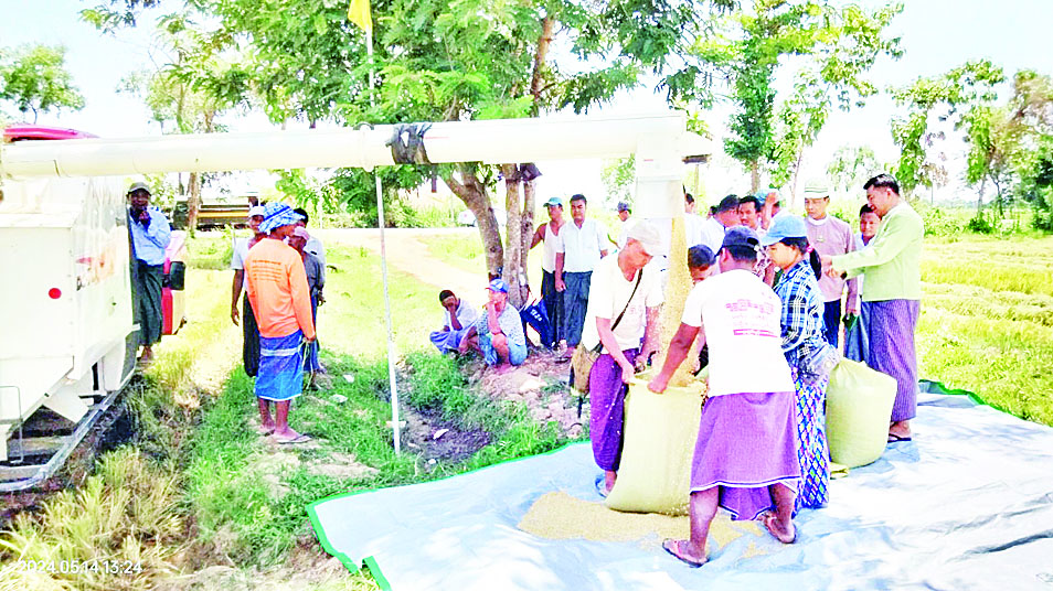 ပဲခူးတိုင်းဒေသကြီး ရွှေတောင် မြို့နယ် ကြို့ကုန်းကျေးရွာအုပ်စု တောင်သူ ဦးလင်းလင်း၏ နွေစပါး စိုက်လယ်မြေတွင် ယမန်နေ့က (နွေစပါး) ဗီယက်နမ်စပါးမျိုးအား ရိတ်သိမ်းခြွေလှေ့စက်ဖြင့် နွေစပါး စံကွက် ရိတ်သိမ်းခဲ့သည်။