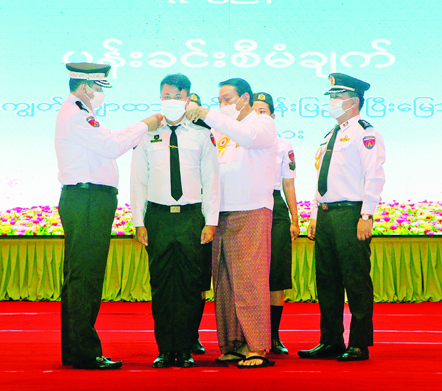 ယင်းနောက် ပြည်နယ်ဝန်ကြီးချုပ်၊ တိုင်းမှူးနှင့် တာဝန်ရှိသူများက ပန်းခင်းစီမံချက် အောင်မြင်ရေး အတွက် ပံ့ပိုးကူညီဆောင်ရွက်ပေးကြသည့် ပြည်နယ် အတွင်းရှိ ဌာနဆိုင်ရာများ၊ ခရိုင်နှင့် မြို့နယ်များမှ အုပ်ချုပ်ရေးမှူးများနှင့် ဦးစီးမှူးများအား ဂုဏ်ပြု မှတ်တမ်းလွှာများ ပေးအပ်ကြသည်။