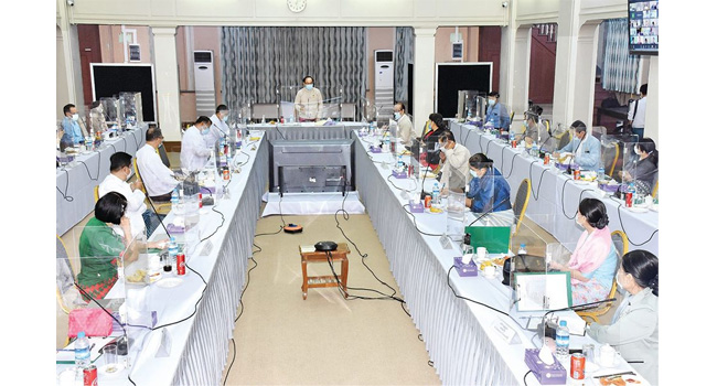 ရှေးဦးစွာ ပြည်ထောင်စုဝန်ကြီးက ရခိုင် ပြည်နယ်တွင် ကိုဗစ်-၁၉ ကူးစက်ဖြစ်ပွားမှု သည် မြန်ဆန်လျက်ရှိပြီး ဩဂုတ် ၁၆ ရက်မှ ၂၁ ရက်အထိ ငါးရက်တာကာလအတွင်း၌ ဓာတ်ခွဲအတည်ပြုလူနာသစ် ၄၅ ဦး တွေ့ရှိခဲ့ပြီး ၄၄ ဦးသည် စစ်တွေမြို့မှ ဖြစ်ပါကြောင်း၊ ယခု စစ်တွေမြို့၌ ကူးစက်ဖြစ်ပွားနေသော ဗိုင်းရပ်စ်ပိုးသည် မျိုးဗီဇပြောင်းလဲနေသည့် အမျိုးအစား ဖြစ်နိုင်သောကြောင့် ဆေးသုတေသနဦးစီးဌာန၌ ဗိုင်းရပ်စ်ပိုး၏ မျိုးဗီဇကို စစ်ဆေးဖော်ထုတ်သွားမည် ဖြစ်ပါ ကြောင်း၊ ဝန်ကြီးဌာနအနေဖြင့် ရခိုင် ပြည်နယ် လူမှုရေးဝန်ကြီး၊ ရခိုင်ပြည်နယ် ပြည်သူ့ကျန်းမာရေးနှင့် ကုသရေးဦးစီးဌာနမှူး တို့နှင့် အချိန်နှင့်တစ်ပြေးညီ ချိတ်ဆက်ကာ ရခိုင်ပြည်နယ်တွင် ရောဂါကာကွယ်ထိန်းချုပ် ရေးနှင့် အခြားနေရာဒေသများသို့ ပြန့်ပွားမှု ထိန်းချုပ်ရေးလုပ်ငန်းများ ဆောင်ရွက်လျက် ရှိပါကြောင်း၊ စစ်တွေသူနာပြုနှင့် သားဖွား သင်တန်းကျောင်းမှ အောင်မြင်ခဲ့သည့် သူနာပြု ၅၆ ဦးအား ရခိုင်ပြည်နယ်တွင် ယမန်နေ့က ခန့်အပ်တာဝန်ချထားခဲ့ပြီး ဖြစ်ကြောင်း၊ ဩဂုတ် ၂၃ ရက်တွင်လည်း “မိမိဆန္ဒ အလျောက်” ရခိုင်ပြည်နယ်တွင် ယာယီ တာဝန်ထမ်းဆောင်မည့် ဒုတိယပြည်နယ် ပြည်သူ့ကျန်းမာရေးဦးစီးဌာနမှူး တစ်ဦး၊ လက်ထောက်ဆရာဝန် (မေ့ဆေးအထူးကု) သုံးဦးနှင့် လက်ထောက်ဆရာဝန် (ဆေးပညာ အထူးကု) တစ်ဦးနှင့် လက်ထောက်ဆရာဝန် ၁၃ ဦးကို ဆေးနှင့် ဆေးပစ္စည်းကိရိယာများ နှင့်အတူ အထူးလေယာဉ်ဖြင့် ထပ်မံပို့ဆောင် သွားမည်ဖြစ်ပါကြောင်း၊ ကိုဗစ်-၁၉ ဓာတ်ခွဲ စစ်ဆေးမှုများကို စစ်တွေပြည်သူ့ဆေးရုံကြီး တွင် GeneXpert စက်နှစ်လုံးဖြင့် စစ်ဆေးလျက် ရှိပြီး ရောဂါဗေဒအထူးကုဆရာဝန်ကြီး တစ်ဦး နှင့် အဏုဇီဝဗေဒပညာရှင် နှစ်ဦးကိုလည်း အင်အားဖြည့်တင်း ယာယီတာဝန်ချထားပြီး ဖြစ်၍ ဩဂုတ် ၂၃ ရက်တွင် သွားရောက် ကြမည်ဖြစ်ပါကြောင်း၊ စစ်တွေပြည်သူ့ ဆေးရုံကြီးတွင် လူနာထားရှိရန် နေရာများ တိုးချဲ့ခြင်းကို လုပ်ဆောင်နေပြီး လိုအပ်ပါက ယာယီဆေးရုံများပြုလုပ်ရန် စီစဉ်လျက် ရှိပါကြောင်း။