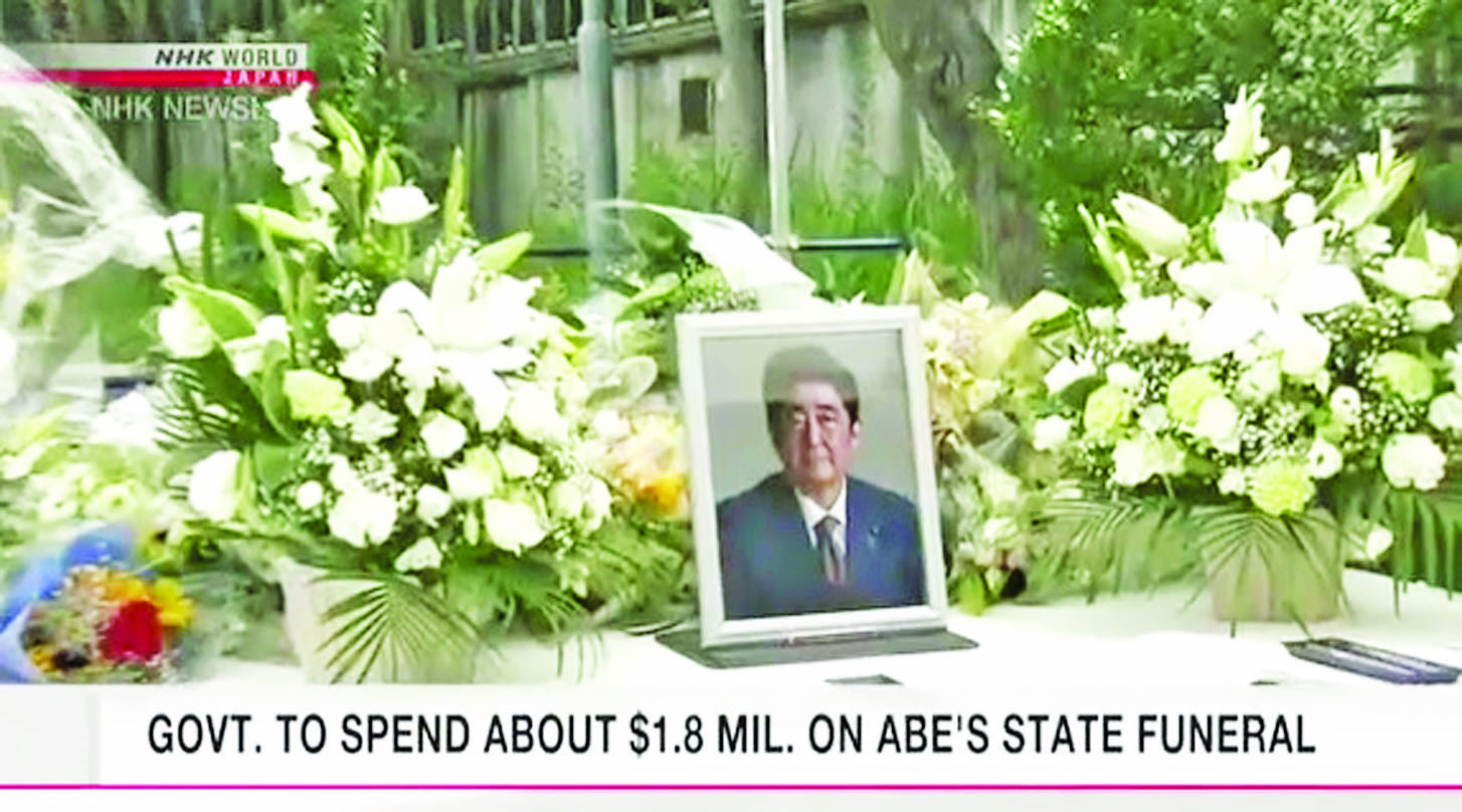 ဝန်ကြီးချုပ်ဟောင်း ရှင်ဇိုအာဘေး၏ ဈာပန အခမ်းအနားကို စက်တင်ဘာ ၂၇ ရက်တွင် တိုကျို မြို့ Nippon Budokan ၌ ကျင်းပသွားမည်ဖြစ်ကြောင်း သိရသည်။ အဆိုပါ အခမ်းအနား ပြင်ဆင်ရန်အတွက် အမေရိကန်ဒေါ်လာ ၁ ဒသမ ၅ သန်းကို ခွဲဝေချ ထားပြီးဖြစ်ကြောင်း သိရသည်။ ကျန်ရှိသည့် ငွေများကို နေရာငှားရမ်းခ၊ သယ်ယူပို့ဆောင်ရေးနှင့် အထွေထွေအသုံးစရိတ်များအတွက် အသုံးပြုသွား မည် ဖြစ်သည်။