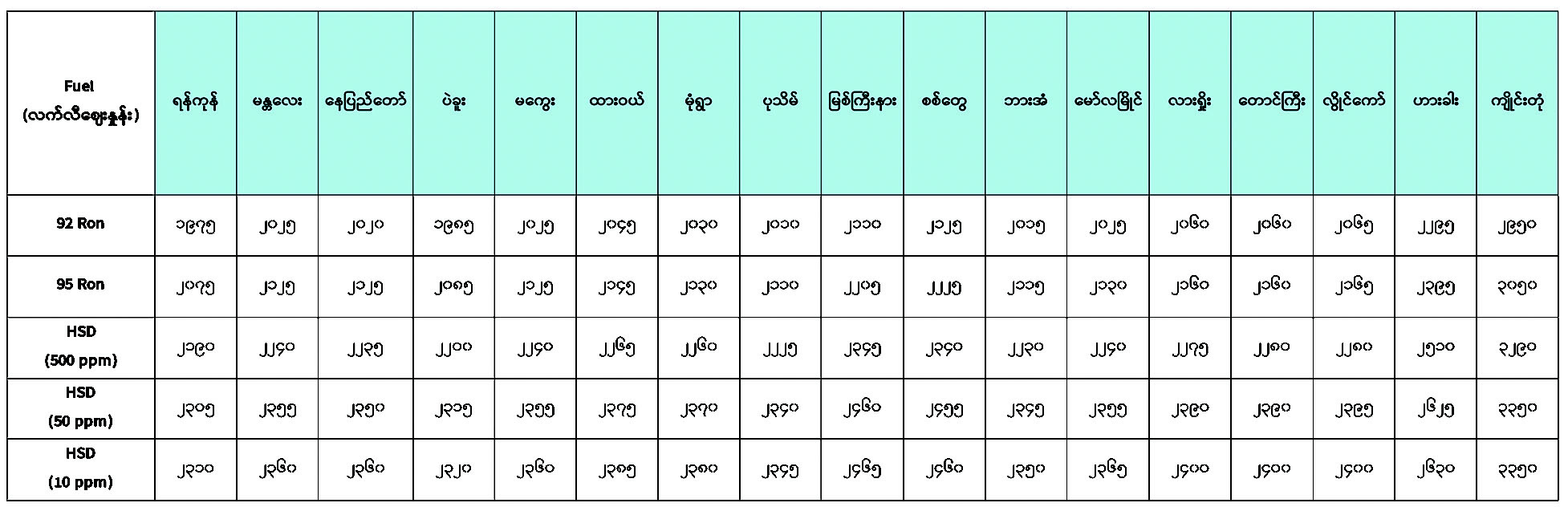 ရန်ကုန်မြို့နှင့် မန္တလေးမြို့အတွက် ရည်ညွှန်းလက်ကားဈေးနှုန်းများနှင့် ပြည်ထောင်စုနယ်မြေ နေပြည်တော်၊ တိုင်းဒေသကြီး/ ပြည်နယ် မြို့တော်များအတွက် ရည်ညွှန်းလက်လီဈေးနှုန်းများ