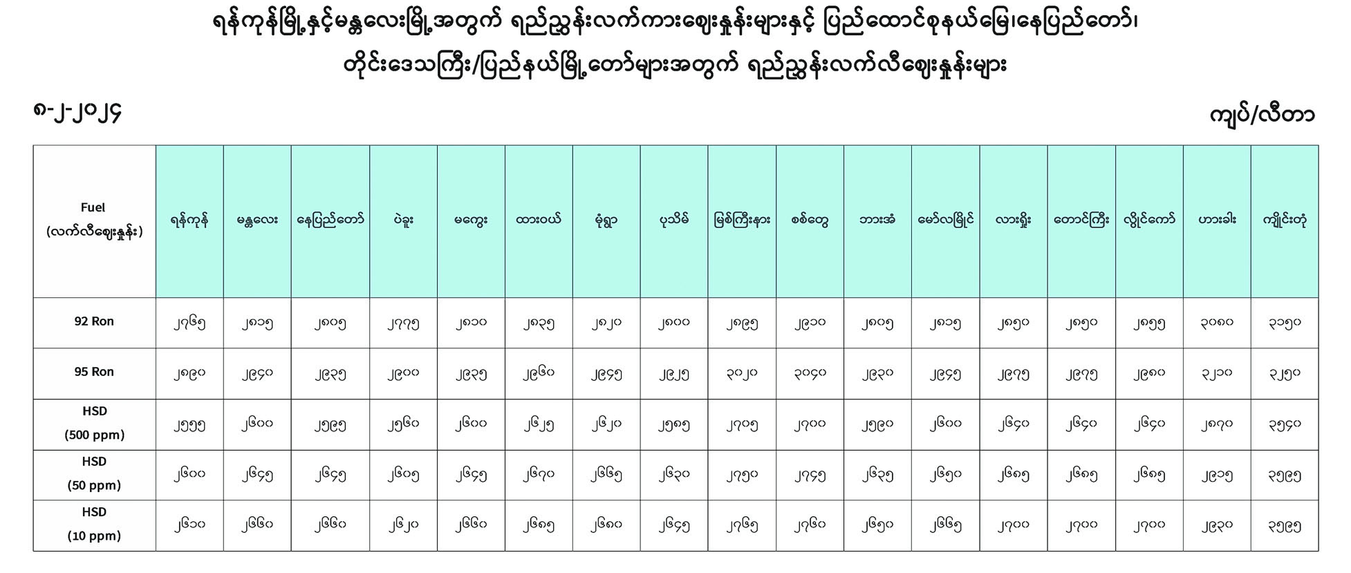 ရန်ကုန်မြို့နှင့် မန္တလေးမြို့အတွက် ရည်ညွှန်းလက်ကားဈေးနှုန်းများနှင့် ပြည်ထောင်စုနယ်မြေ နေပြည်တော်၊ တိုင်းဒေသကြီး/ ပြည်နယ် မြို့တော်များအတွက် ရည်ညွှန်းလက်လီဈေးနှုန်းများ