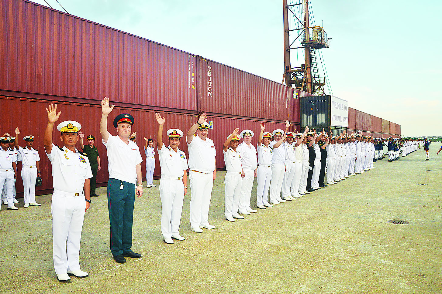 ရုရှားရေတပ်မှ ဖျက်သင်္ဘော (Destroyer) များဖြစ်သည့် စစ်ရေယာဉ် Admiral Tributs ၊ Admiral Panteleev နှင့် Sea Tanker Pechenga တို့သည် ပြည်ထောင်စုသမ္မတ မြန်မာနိုင်ငံတော်သို့ ပထမအကြိမ် မြန်မာ - ရုရှား ရေကြောင်း လုံခြုံရေးဆိုင်ရာ လေ့ကျင့်ခန်းဆောင် ရွက်ရန်နှင့် ချစ်ကြည်ရေးခရီးလည်ပတ် ရန်အတွက် ယနေ့ညနေပိုင်းက ရန်ကုန် မြို့ သီလဝါဆိပ်ကမ်းသို့ ရောက်ရှိရာ တပ်မတော်(ရေ)မှ အရာရှိကြီးများ၊ အရာရှိ၊ စစ်သည်များ၊ ရုရှားစစ်သံမှူးနှင့် တာဝန်ရှိသူ များက ကြိုဆိုနှုတ်ဆက်ကြသည်။